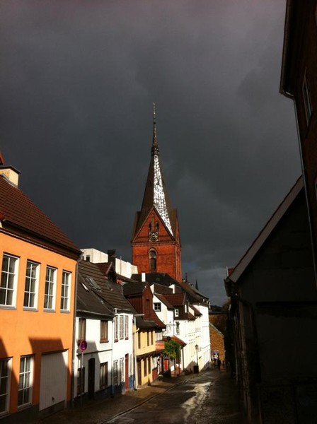Ich wohne im wunderschönen Flensburg, in der Marienstraße.